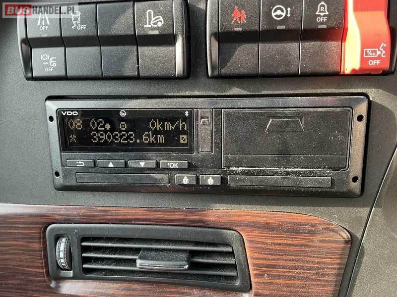 Wyposażenie: WC, lodówka, oświetlenie indywidualne, nawiewy dyszowe, siateczki, ABS, ASR, tempomat, retarder, nawigacja, CD, podnóżki, stoliczki, mikrofon, klimatyzacja, radio, regulacja wysokości nadwozia, centralny zamek, podwójne szyby boczne, wspomaganie kierownicy, elektryczne lusterka, fotele odchylane i rozsuwane, DVD, ogrzewanie stacjonarne, hak holowniczy, ESP